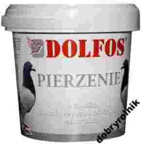 W okresie pierzenia wzrasta zapotrzebowanie gołębi na aminokwasy siarkowe (metionina), niezbędne do syntezy białka tworzącego się pióra. Spośród witamin szczególne znaczenie w tym okresie mają: witamina A, E, kwas nikotynowy, biotyna i witamina B12. Również w czasie wymiany opierzenia szczególnie ważne są fosfor, magnez, miedź, cynk oraz jod. DOLFOS DG PIERZENIE jest doskonałym, przeznaczonym dla gołębi preparatem, w skład którego wchodzi nie tylko dokładnie dobrany zestaw 14 witamin, ale również łatwo przyswajalne składniki mineralne (makro- i mikroelementy) i niezbędny aminokwas siarkowy - metionina. Cennym uzupełnieniem preparatu jest dodatek ziół poprawiających pracę przewodu pokarmowego i naturalnych drożdży bogatych w witaminy z grupy B. Korzystne działanie preparatu ulega wzmocnieniu, przy równoczesnym stosowaniu w okresie pierzenia preparatu DOLFOS DG TOROVIT.