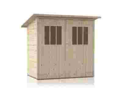 Zimowit będzie idealnym miejscem na przechowywanie narzędzi ogrodniczych. Domek o konstrukcji z elementów gotowych, bez podłogi, wykonany z drewna surowego, kryty dachem pulpitowym. Na jednym z dłuższych boków umieszczono dwuskrzydłowe drzwi otwierane na zewnątrz, wyposażone w przeszklenia ze szprosami.
