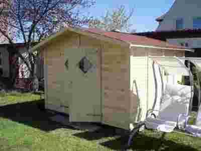 Domek ogrodowy o wymiarach 300x300 cm, kryty papą, lub w cenie 4600 gontem (zielony lub czerowny) Podwójne wejście, domek z podłogą zamykany na klucz. Dostawa domku złożonego na palecie. Montaż we własnym zakresie lub przez nasza firmę, koszt 400 zł.