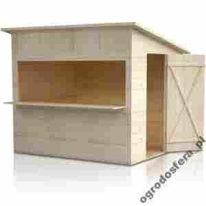 Domek przystosowany do celów handlowych, idealnie sprawdzi się na festynach lub jarmarkach. Wykonany z impregnowanego drewna posiada pulpitowy dach o umiarkowanym spadku. Drzwi z wewnętrznymi wzmocnieniami umieszczono na jednym z krótszych boków. Otwór okienny zamykany drewnianą ruchomą ladą. Wnętrze wyposażono w drewniany podest. Elewację ożywia pionowy układ desek w górnej części ścian.