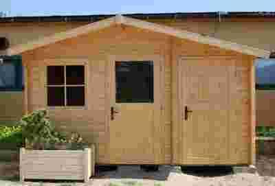 Solidny i funkcjonalny domek ogrodowy który wykonany jest z drewna świerkowego. Posiada dwa oddzielne pomieszczenia - rekreacyjne oraz składzik, będący idealnym miejscem na przechowywanie narzędzi ogrodniczych. Domek posiada oddzielne wejścia do każdego z pomieszczeń z drzwiami jednoskrzydłowymi: przeszklonymi i litymi, otwieranymi na zewnątrz. Na przedniej elewacji umieszczono okno ze szprosami. Dwuspadowy dach domku pokryty jest papą asfaltową.