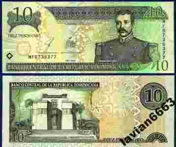 DOMINIKANA 10 PESOS 2003 r. P-168c NISKI NUMER UNC