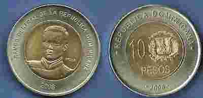 DOMINIKANA 10 PESOS 2008 BIMETAL MENNICZA!!!!