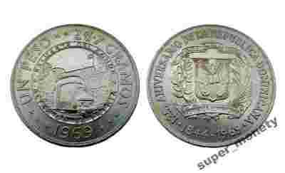 Dominikana 1 peso 125 lat Republiki 1969