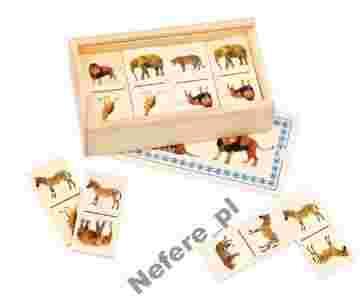Domino to popularna gra, która polega na dopasowaniu drewnianych elementów pasujących do siebie np. lew do lwa, słoń do słonia tak, aby stykały się ze sobą obrazkami.