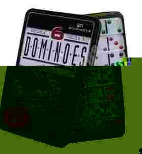 Profesjonalny zestaw 28 kostek domino, dodatkowo w sześciu kolorach oczek dla sprawienia, by gra była jeszcze ciekawsza i wymagająca więcej myślenia