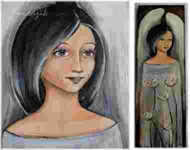 Domowy Anioł malowany na drewnie CUDOWNY!