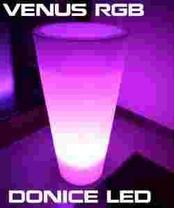 Donica VenusLight RGB zawiera źródło światła led - jest to żarówka E27 led RGB sterowana zdalnie - żarówka potrafi świecić 16 kolorami (m.in czerwony, zielony, niebieski) oraz posiada 4 tryby świecenia (flash, stroboskop, łagodne zmiany kolorów, wygaszanie). Żarówka posiada również pamięć (przed wyłączeniem i po ponownym włączeniu świeci tak samo).Do żarówki jest dostęp - wymienić ja można samemu w domu w prosty sposób.Do tego Lampa posiada przewód wtyczkowy 1.5m z przełącznikiem , tak jak w każdej tradycyjnej lampie , więc świetnie ją wykorzystamy w każdym pomieszczeniu .Ważne jest ,aby określić czy donica będzie stała wewnątrz domu czy na zewnątrz (np w ogrodzie ) - jeśli na zewnątrz - przewód będzie miał adekwatne IP - tym razem bez przełącznika. Wymiary lampy to 900mm x 450mm/300mm