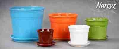 Doniczki ceramiczne wykonane są metodą tradycyjną z polskiej gliny i barwników, sprzedawane wraz z podstawkami.