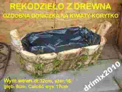 Ozdobna wykonana z brzozy doniczka na kwiaty.