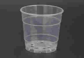 Przedmiotem aukcji jest przezroczysta doniczka do przesadzania storczyków.