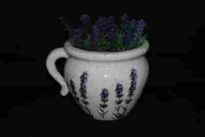 Doniczka, osłonka ceramiczna z motywem lawenda