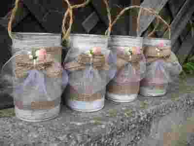 doniczki, osłonki z puszek komplet __ SHABBY CHIC