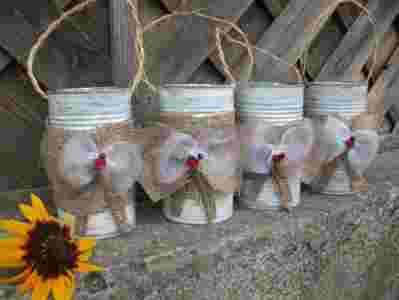 doniczki, osłonki z puszek komplet __ SHABBY CHIC