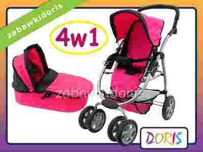 Super nowoczesny, duży wózek lalkowy - 4 funkcyjny – głęboki i sportowy, z możliwością dwustronnego założenia gondoli / spacerówki przodem lub tyłem do kierunku jazdy.