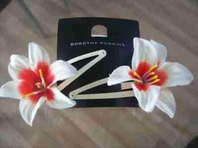 DOROTHY PERKINS SPINKI KWIATKI KREM CZERWIEŃ