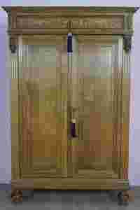 za którymi widnieją dwie półki. Nad skrzydłami umieszczona jest bardzo funcjonalna szufladka. Całość udekorowana motywami roślinnymi charakterystycznymi dla owego stylu, który prezentuje mebel. Dodatkowym jej atutem są mosiężne okucia oraz zamki z kompletem kluczy. Całość po fachowej renowacji, bez śladów po szkodnikach. Wnętrze zostało oczyszczone, bez nieprzyjemnych zapachów.