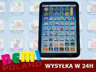Menu tableta jest w języku polskim, szeroki ekran wyraźnie wyświetla literki, obrazki cyferki,dzięki czemu dziecko bez problemu będzie mogło bawić się ucząc.