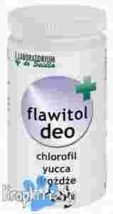 Tabletki regulujące procesy trawienne. W czasie procesów trawiennych związków białkowych i tłuszczy w przewodzie pokarmowym zwierząt powstaje szereg związków o nieprzyjemnym zapachu - krótkołańcuchowe ketony, aldehydy, indole i inne. Związki te mogą wywierać niekorzystny wpływ na zdrowie zwierząt włącznie z efektem rakotwórczym. Dlatego ważne jest, aby dieta zwierząt była bogata w substancje regulujące procesy trawienne i zapobiegające powstawaniu szkodliwych metabolitów. Trzy substancje - chlorofil, włókno z Yucci oraz drożdże Saccharomyces - zawarte we Flawitolu Deo działając wspólnie regulują procesy trawienne minimalizując w ten sposób powstawanie nieprzyjemnych zapachów wydzielanych przez zwierzęta. Dodatek flawonoidów w preparacie zwiększa odporność organizmu na wiele chorób (w tym nowotworowych) i opóźnia procesy starzenia.