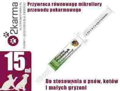 Przywraca równowagę mikroflory przewodu pokarmowego. Dla psów, kotów i królików.