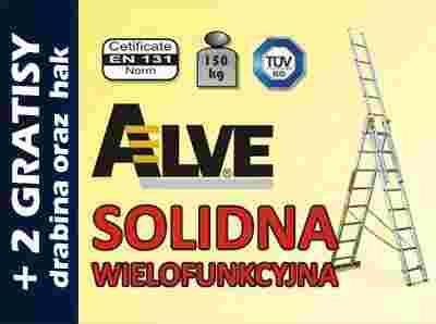 - Dlaczego Alve? odpowiedź jest prosta! Mają najlepszy stosunek jakości do ceny. Może nie są najtańsze, są o ok.10 zł droższe od innych drabin na allegro jednak wykonane są dokładniej i z lepszych materiałów, a to kosztuje. Jest to zakup na lata i warto dołożyć kilka złotych by nie okazał się zakupem na miesiące. Nie jest to chińszczyzna, a markowe europejskie drabiny produkowane na rynek zachodni. Są zgodne ze wszelkimi europejskimi normami na co masz załączony certyfikat TUV. Posiadają podgumowane stopki (nie ślizgają się po podłodze i są trwalsze od tanich plastikowych stopek).. Posiadasz wieloletnią gwarancję producenta, a jak dużo dużo później uszkodzi Ci się jakiś element części zamienne do niej dostępne są od ręki (w tanich drabinach części zamienne są nie do zdobycia). Ponadto kupując u nas masz pewność, że nie będziesz się denerwował, że drabina nie dochodzi, albo że produktu nie ma na magazynie - sprawdź komentarze i porównaj z komentarzami innych sprzedawców.