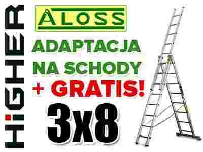Drabina aluminiowa 3x8 ALOSS na schody + GRATIS