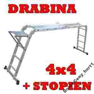 DRABINA ALUMINIOWA 4x4 + PODEST + STOPIEŃ