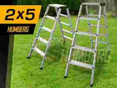 Domowa, rozkładana drabina aluminiowa Humberg z podestem górnym. Drabina szybko się rozkłada, można wchodzić na nią z obu stron, a w górnej części posiada jednolitą szeroką platformę, która ułatwia pracę na wysokości. Dzięki opcji szybkiego składania jej przechowywanie nie stanowi problemu.