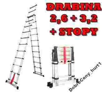 Drabina TELESKOPOWA 2,6 + 3,2 m + STOPY