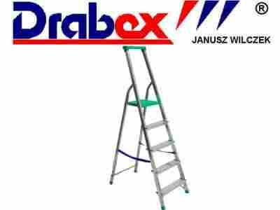 Drabina aluminiowa 5 stopniowa z półką (4 stopnie + podest) renomowanego polskiego producenta DRABEX