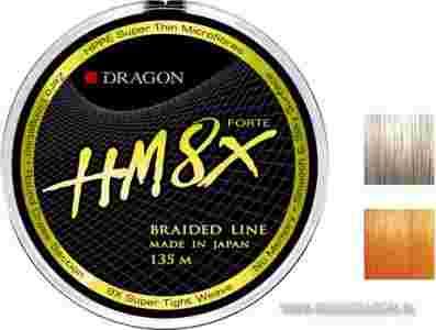 Jest to specjalna kompozycja włókna HPPE z dodatkiem amilanu (włókna aramidowego opatentowanego przez firmę Toray), splecionego w technologii ośmiosplotowej. W porównaniu do swojej poprzedniczki, plecionki HM8X, nowa HM8X Forte jest jeszcze wytrzymalsza i znacznie odporniejsza na niekorzystne czynniki zewnętrzne, co w znaczący sposób będzie opóźniać proces starzenia i pozwoli na dłuższy okres bezproblemowego użytkowania. Plecionka HM8X jest bardzo odporna na ścieranie i całkowicie pozbawiona rozciągliwości, a wytrzymałość na prawidłowo zawiązanych węzłach jest niemal identyczna z wytrzymałością liniową. Nowa linka jest doskonale okrągła w przekroju, miękka i jedwabista w dotyku, dzięki czemu możemy wykonywać dalsze i bardziej precyzyjne rzuty przynętą. Specjalne wykończenie powierzchni zapobiega plątaniu się linki nawet przy rzutach pod wiatr. Najnowsza HM8X Forte dostępna będzie w dwóch kolorach, szarym i pomarańczowym fluo, w odcinkach po 135 metrów. Firma Dragon jako pierwsza otrzymała prawo do dystrybucji nowej plecionki na terenie Europy.