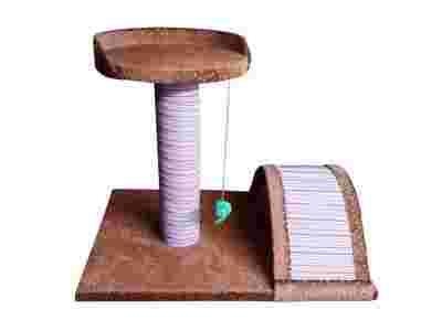 Wyposażony jest w słupek do drapania, półkę z oparciem oraz mostek do zabawy i do drapania.