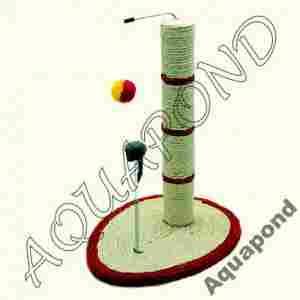 Wielofunkcyjny drapak dla kota wyposażony w piłkę oraz myszkę.