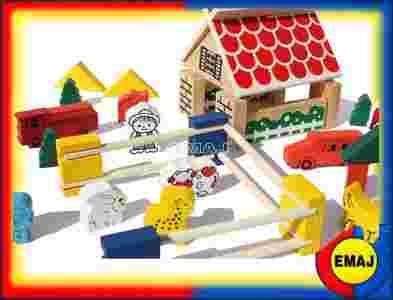 DREWNIANA FARMA edukacyjna ZAGRODA klocki 46el !!