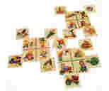 Zestaw zawiera: 3 drewniane tabliczki 12,4 x 12,4 cm oraz 12 drewnianych obrazków 6,2 x 6,2 cm
