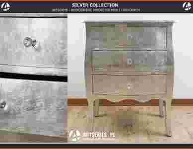 DREWNIANA KOMODA SZAFKA SREBRNA STYLOWA
