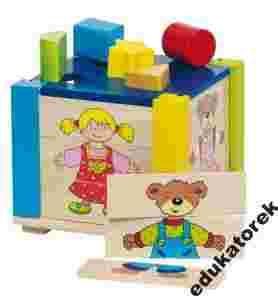DREWNIANA KOSTKA Z MISIEM sorter + układanka 2 w1