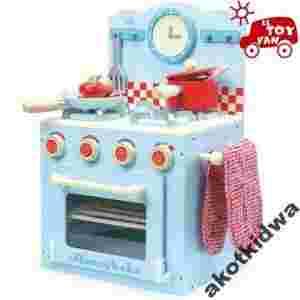Drewniana kuchnia kuchenka akcesoria niebieska