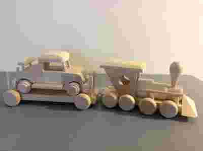 DREWNIANA LOKOMOTYWA Z WAGONIKIEM I AUTEM ZESTAW!!