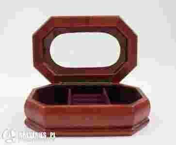 Przedmiotem aukcji jest stylowa, drewniana szkatułka na biżuterię.