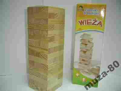 MAM DO ZAOFEROWANIA GRĘ JENGA. GRA POLEGA NA UMIEJETNYM WYCIĄGANIU POSZCZEGÓLNYCH ELEMENTÓW I UKŁADANIU ICH NA SAMEJ GÓRZE WIEŻY, KOMU WIEŻA SIĘ PRZEWRÓCI PODCZAS WYJMOWANIA ELEMENTU BĄDŻ JEGO UŁOŻENIA NA GÓRZE TEN OCZYWIŚCIE PRZEGRYWA.