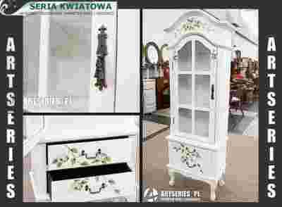 DREWNIANA WITRYNA SZKLANA BIAŁA SZAFKA GABLOTA