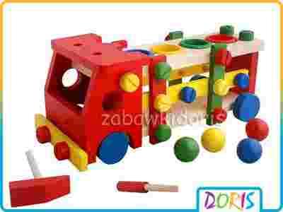 Drewniane Autko Samochód do rozkręcania+ narzędzia