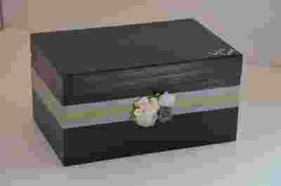 Drewniane czarne pudełko z róża