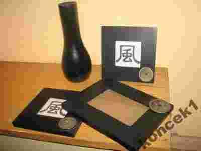 drewniane czarne ramki i wazonik