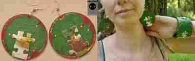 Drewniane duże KOLCZYKI PUZZLE Handmade Super!