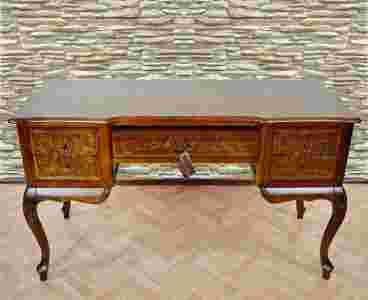 DREWNIANE DWUSTRONNE BIURKO RZEŹBIONE STYLOWE HIT