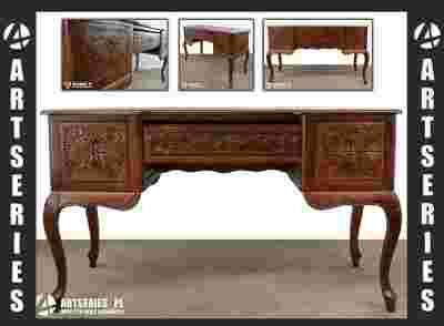 DREWNIANE DWUSTRONNE BIURKO RZEŹBIONE Z DREWNA