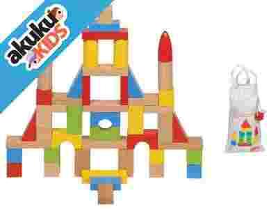 Ten zestaw 50 kolorowych drewnianych klocków to klasyczna, ponadczasowa zabawka. Bawełniany worek z wygodnymi uchwytami umożliwia łatwe przechowywanie klocków i pozwala zabierać je ze sobą w różne miejsca, np. do babci, cioci czy na wakacje. Poza tym po skończonej zabawie klocki zawsze jest gdzie schować.