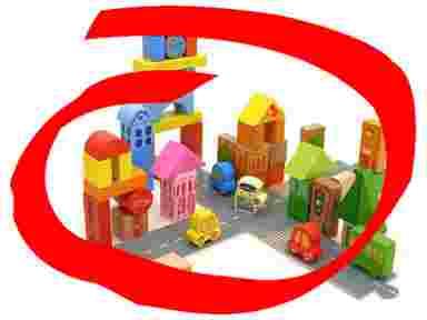 Drewniane klocki miasto samochody policjant +PUDŁO